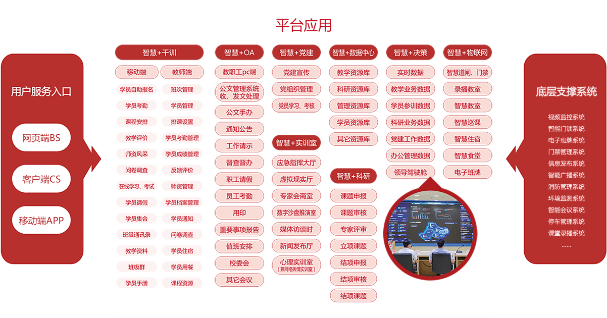智慧党校是以物联网为基础的智慧化的校园工作、学习和生活一体化环境,以各种应用服务系统为载体,将教学、科研、管理和校园生活进行充分融合。简而言之,“要做一个智能、安全、稳定、便捷的院校”。